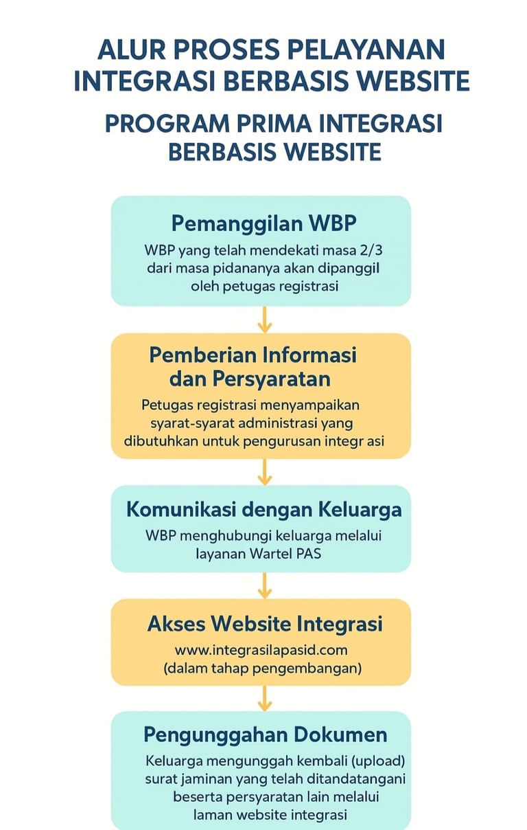 Layanan Integrasi online merupakan Layanan yang diberikan untuk mempermudah warga binaan pemasyarakatan dalam pengurusan program integrasi. Dimana layanan ini dapat menghemat waktu dan biaya serta mempermudah keluarga WBP untuk mendapatkan surat jaminan, silahkan pilih di menu Layanan. Keluarga WBP juga dapat langsung mengupload surat jaminan dan KTP penjamin ke website tanpa harus datang ke lapas, silahkan pilih menu Layanan. Untuk melihat nama-nama WBP yang sudah mendekati masa 2/3 masa pidana dan sudah bisa mengajukan integrasi silahkan pilih menu 2/3 WBP.